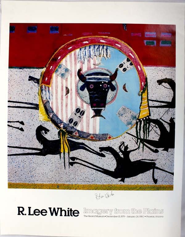 Imagery from the Plains Poster, features painting print by Randy Lee White (b. 1951), measures 27'' x 21'' and is hand signed by the artist, The Heard Musuem, December 15, 1979-January 24, 1980, Phoenix AZ, can be rolled to ship