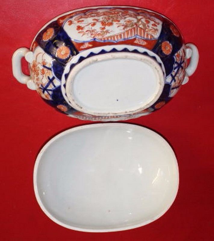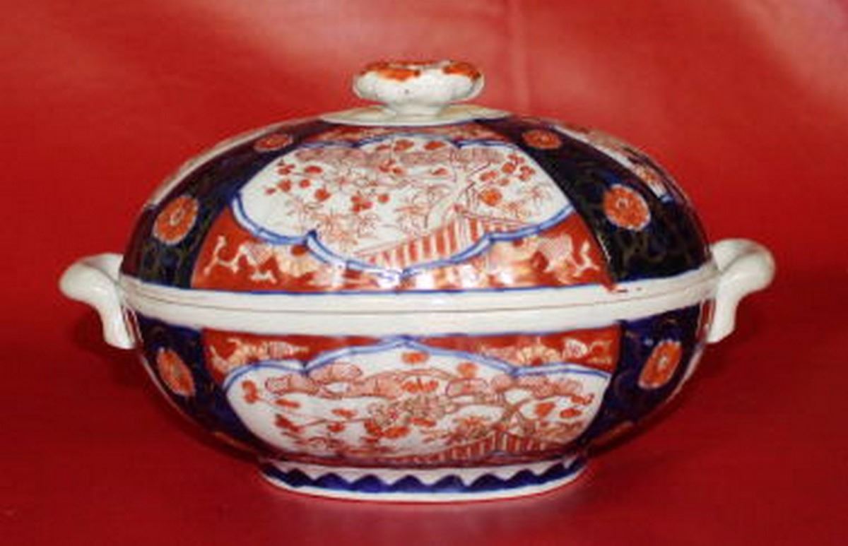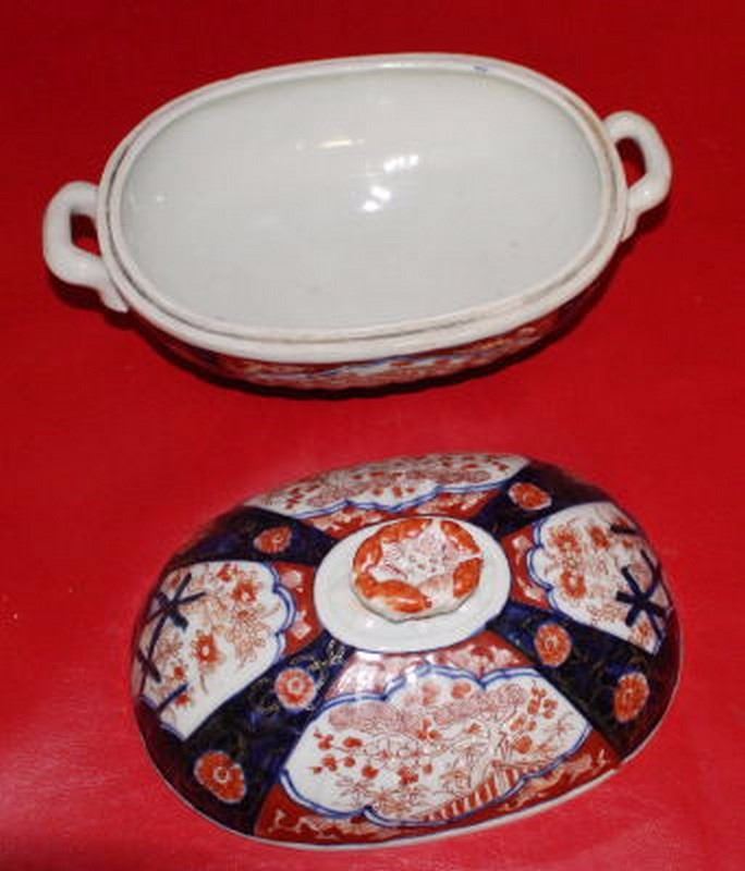 Vintage Imari (unsigned) Red & Blue Japanese Casserole Lidded Dish 10x7", 2.5-lbs