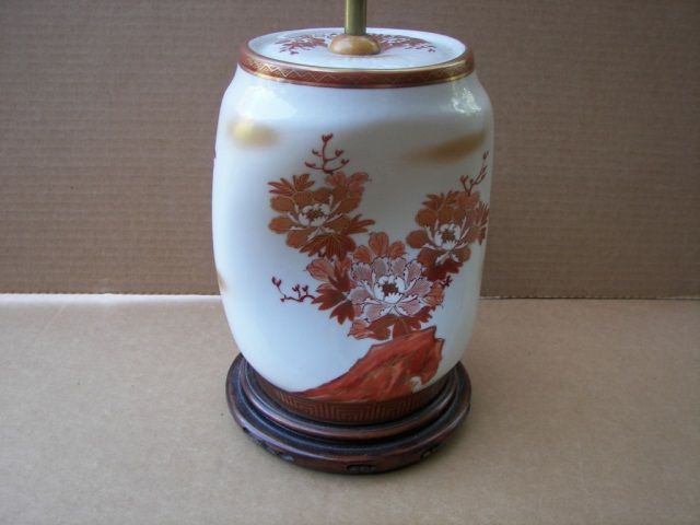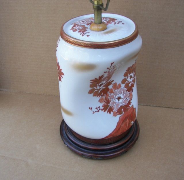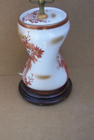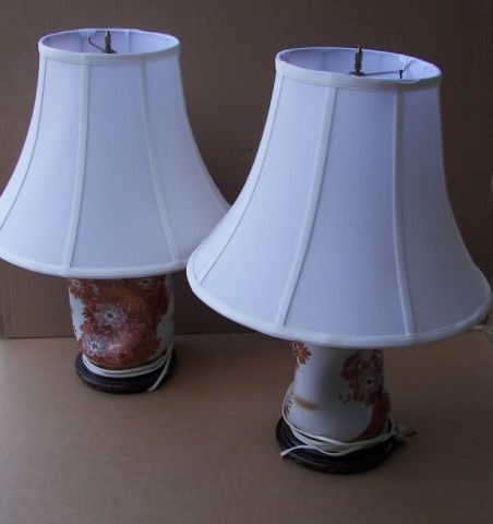 Imari Style Lamp , Pair of Imari Style, Fine Porcelain Lamps, Pinched Design, With Rust and Gold Decor, 7" diameter x 10" tall,