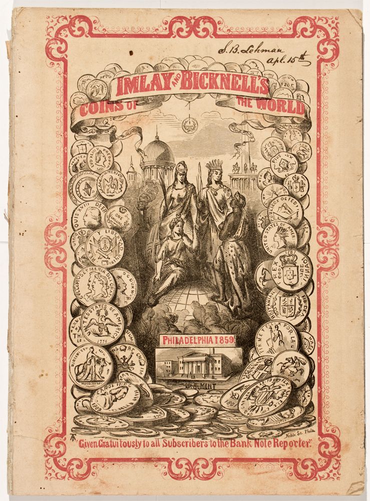 1859 Published by Imlay and Bicknell, Bankers, 112 South Third Street, Philadelphia. Paperback, 62 pages. Given gratuitously to all subscribers to the Bank Note Reporter. Illustrations of coins of the world. Totheroh Collection HKA#63709