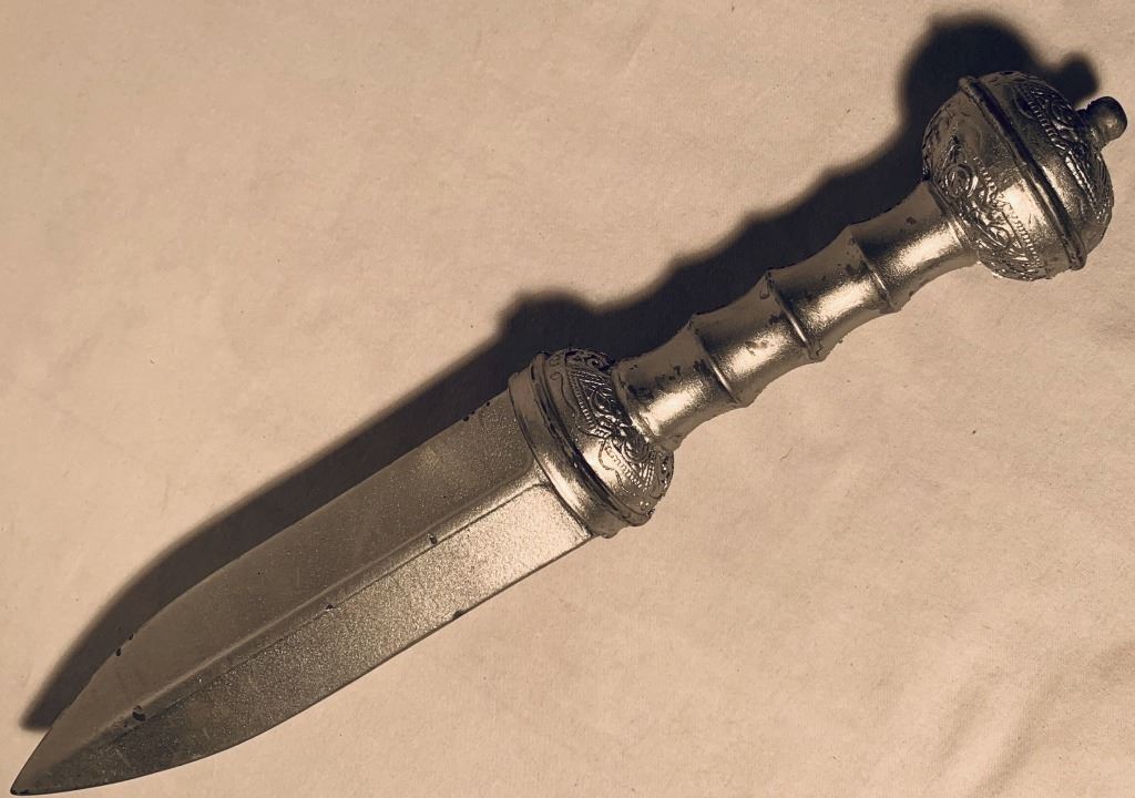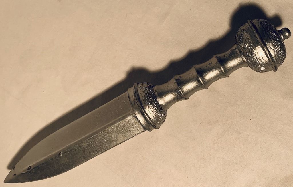 Original silver dagger used by a Hoplite soldier in the epic fantasy action film 'Immortals' (2011) where, Theseus is a mortal man chosen by Zeus to lead the fight against the ruthless King Hyperion, who is on a rampage across Greece to obtain a weapon that can destroy humanity.