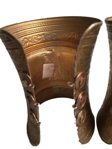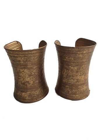 Athena (Isabel Lucas) screen worn, hero, gold metal bracelets two in total, with intricate design open at wrists but can be attached, three button design on each edge of the open part.(4x7)
