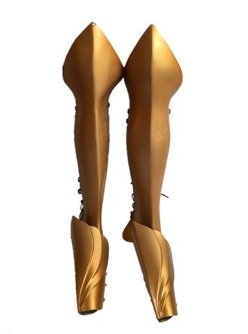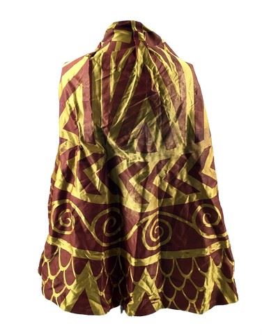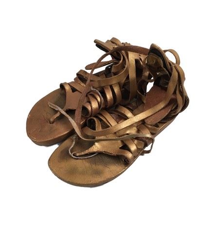 Athena (Isabel Lucas) screen worn for stunt, red and gold cape, gold plastic with ties wrist cuffs, gold plastic with ties in the back ankle guards, and gold leather strappy sandals.
