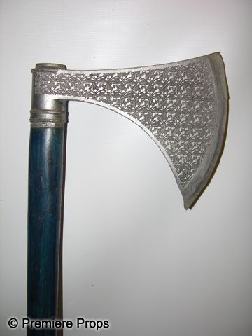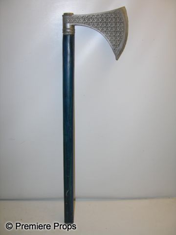 Screen used, blue wood handle with silver rubber head custom made battle axe. (approx. 32 1/2" long)