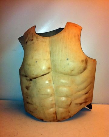 Tan leather chest and back mold used to create the body armor. Template GR:40 on the inside.