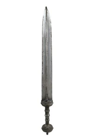 Hoplite Soldier screen used, hero, silver rubber with intricate design sword and sheath. (approx. 32" long)