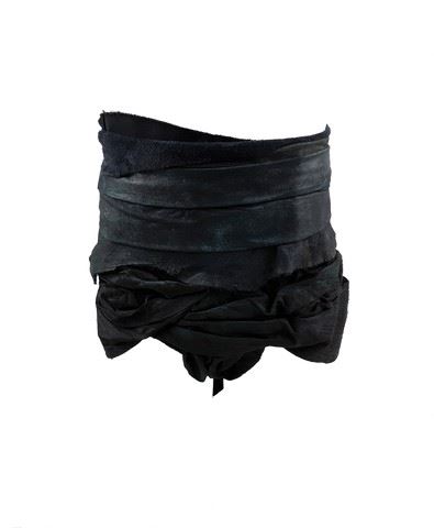 King Hyperion (Mickey Rourke) screen worn, hero, brown leather stitched top, two leather straps, blue leather belt, black cloth shorts, and brown leather and fur boots.