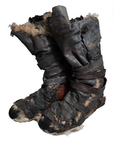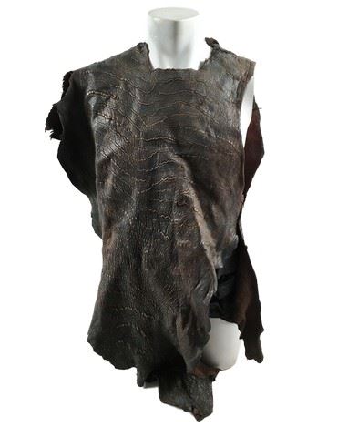 King Hyperion (Mickey Rourke) screen worn, hero, brown leather stitched top, two leather straps, blue leather belt, black cloth shorts, and brown leather and fur boots.