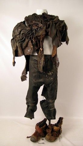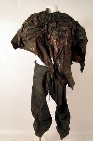 Immortals - Minotaur (Robert Maillet) screen worn, hero, very bloody and worn, heavy leather top with stitching throughout, worn leather pants with velcro and ties on the front and back, and leather boots with leather and fur over the top. This is the last costume of this character available from the movie "Immortals".