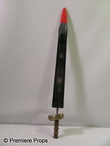 This is a prototype sword model used for creating the actual weapons used in the 2011 fantasy adventure 'Immortals.' Every film weapon starts out with a prototype, and this is what was used to make final decisions for the sword. The sword blade is simply constructed, with a painted, orange rubber 'safety' tip, and attached loosely to the handle. (measures approx. 27 1/2" long). Oversized item. Additional postage required.