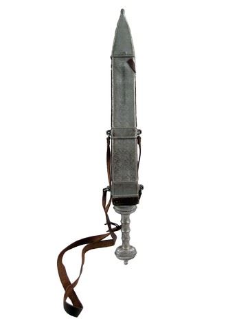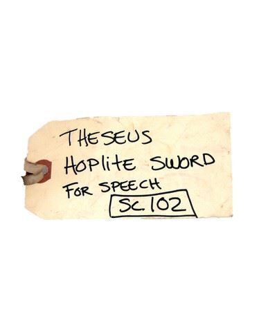 Theseus (Henry Cavill) screen used, hero, silver rubber with detail on the hilt custom made sword, (approx. 29" long) and silver rubber with detail and leather strap custom made sheath. (approx. 23" long) This was used for the speech. Includes prop tag.