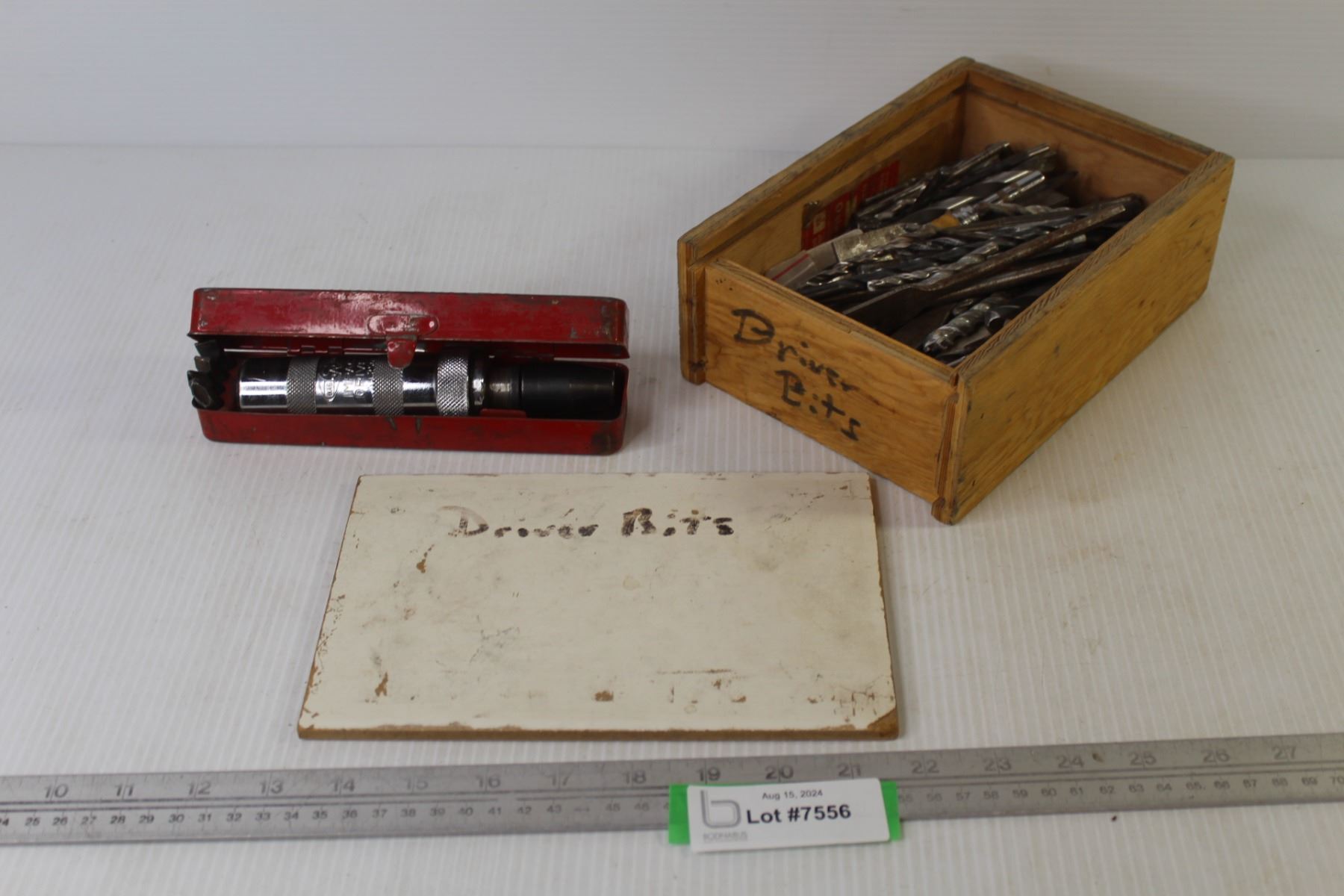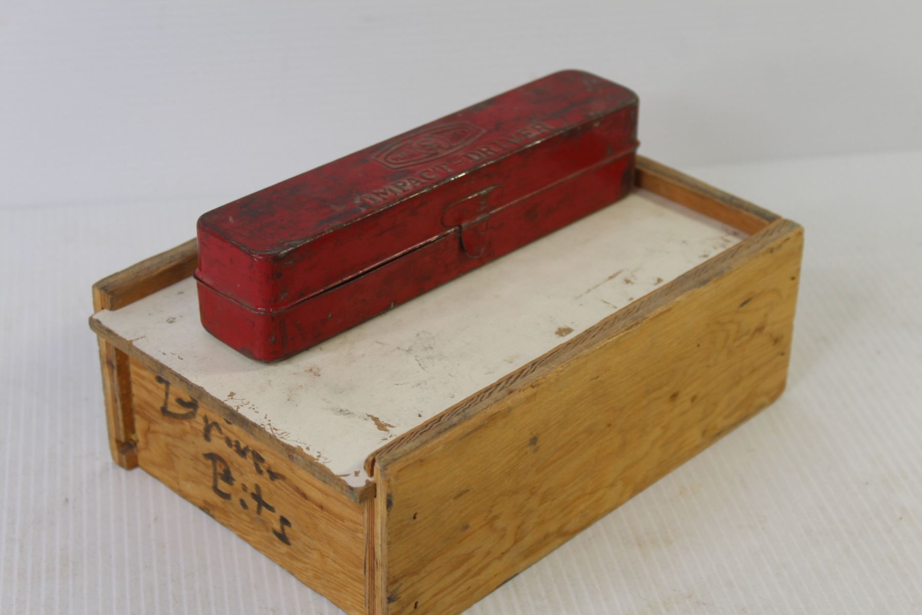Impact Driver in Metal Case - Wooden Box of Assorted Drill Bits