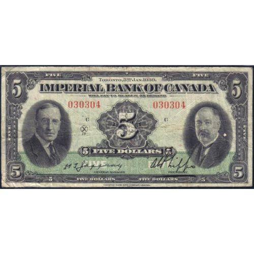 Imperial Bank of Canada Five Dollars 1939, CH-375-24-02, Serial Number 030304 C, PMG Choice Fine 15. A rather clean note