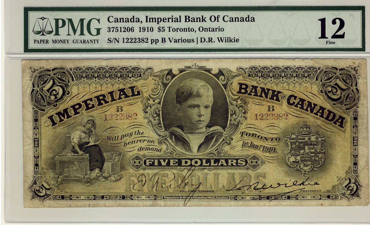 Imperial Bank of Canada 1910 $5 1222382 CH-375-12-06 PMG F12
