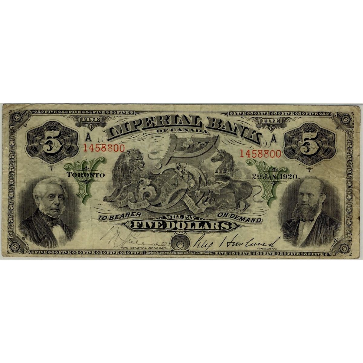 Imperial Bank of Canada 1920 $5 1458800 CH-375-16-06 PMG VF20.