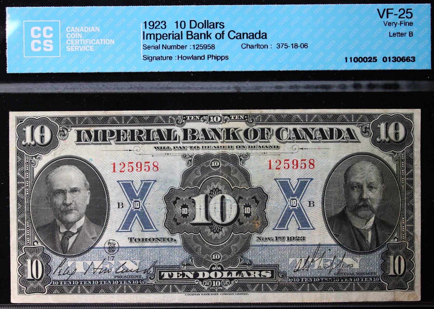 Imperial Bank of Canada 1923 $10 #125958 CH-375-18-06 CCCS VF25
