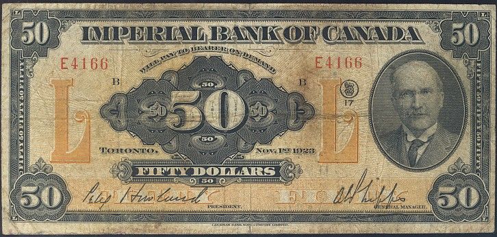 Imperial Bank of Canada; 1923 $10 #E4166 CH-375-18-14, PMG VF20.