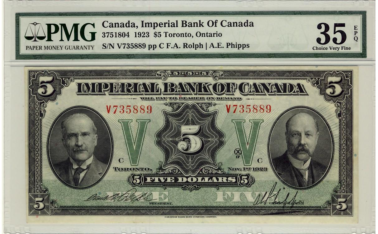Imperial Bank of Canada 1923 $5 #V735889 CH-375-18-04 PMG VF35EPQ