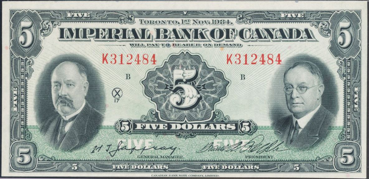 Imperial Bank of Canada; 1934 $5 #K312484 CH-375-22-04, PMG CH UNC64EPQ.