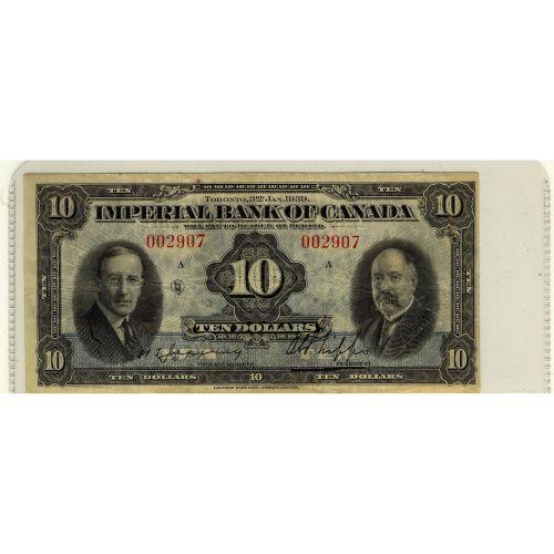 Imperial Bank of Canada 1939 $10 #002907 CH-375-24-04 F-VF