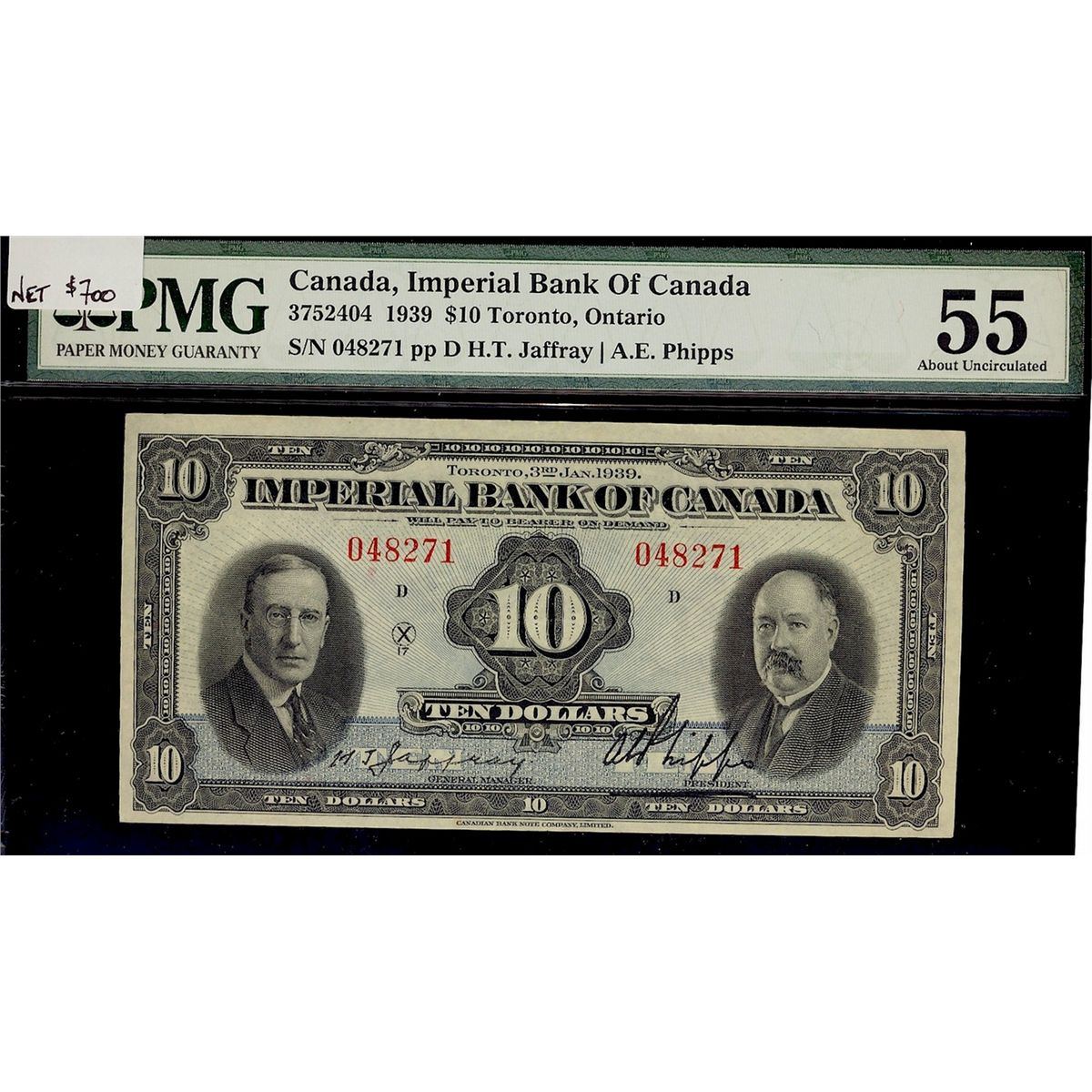 Imperial Bank of Canada 1939 $10 #048271 CH-375-24-04 PMG AU55.