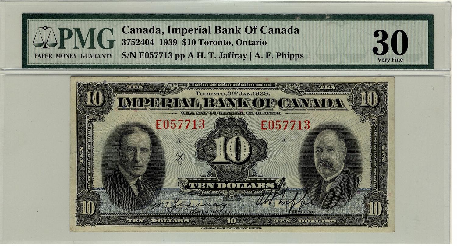Imperial Bank of Canada 1939 $10 #E057713, CH-375-24-04, PMG VF30,