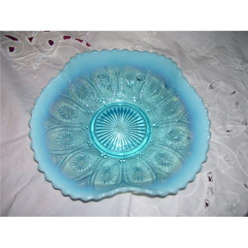 Imperial Beaded & Star Medallion Plate. Blue Opalescent and Three Footed. Very Old and in Very good Condition.