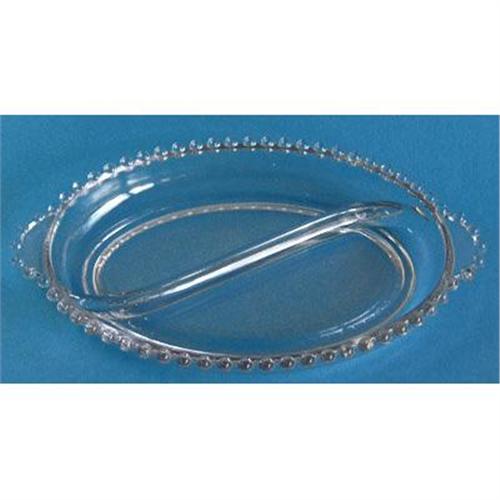 Produced by Imperial Glass in their Candlewick pattern, circa 1950, this beautiful oval 2 part relish dish [400/256] measures 11" long x 5 1/2" wide and is in excellent condion.