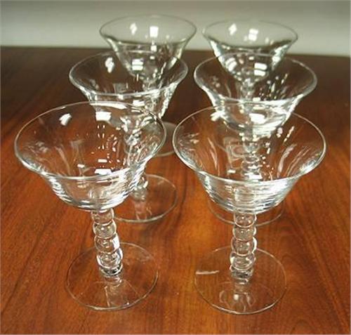 Imperial Candlewick four knob wines standing 4 5/8" tall bowl measures 3 1/2" across. Three have slight edge chipping