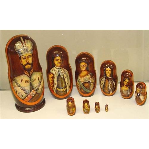 </font></strong>10 in all, each opens to allow for all of Russia's Czars to fit snuggly inside Czar Peter The Great, Each a colorful depiction of that Czars, with their name written in cyrillic on the top and the dates of their respective reign on the verso. This collection would make a superb gift or addition to any fine collection.