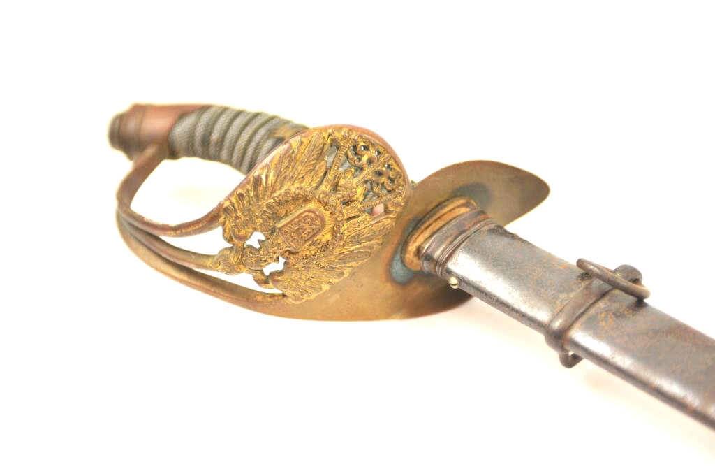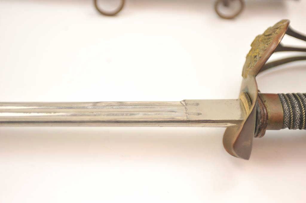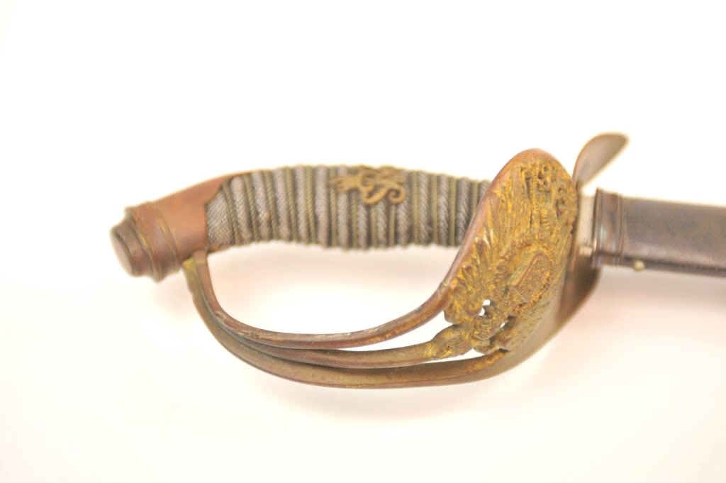 Imperial German Officer’s sword with scabbard. The sword is in good to very good overall condition. The blade is maker marked with scales and at least very good plus, retaining most of the nickel finish. Est.:$175-$350.
