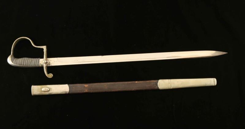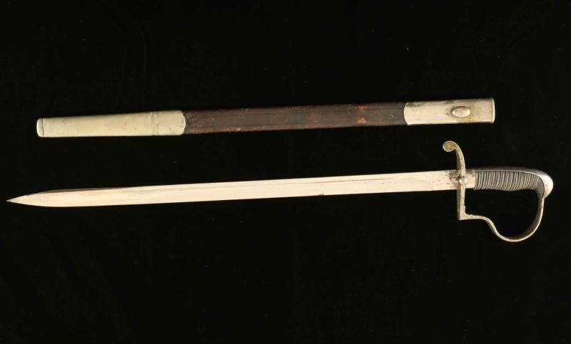 Weyersberg, Kirschbaum & Cie Marked ZEH, S.P. 43, shark skin, wire wrapped handle nickel guard and blade, with leather sheath. 27"overall with a 22"blade (most likely cut down).