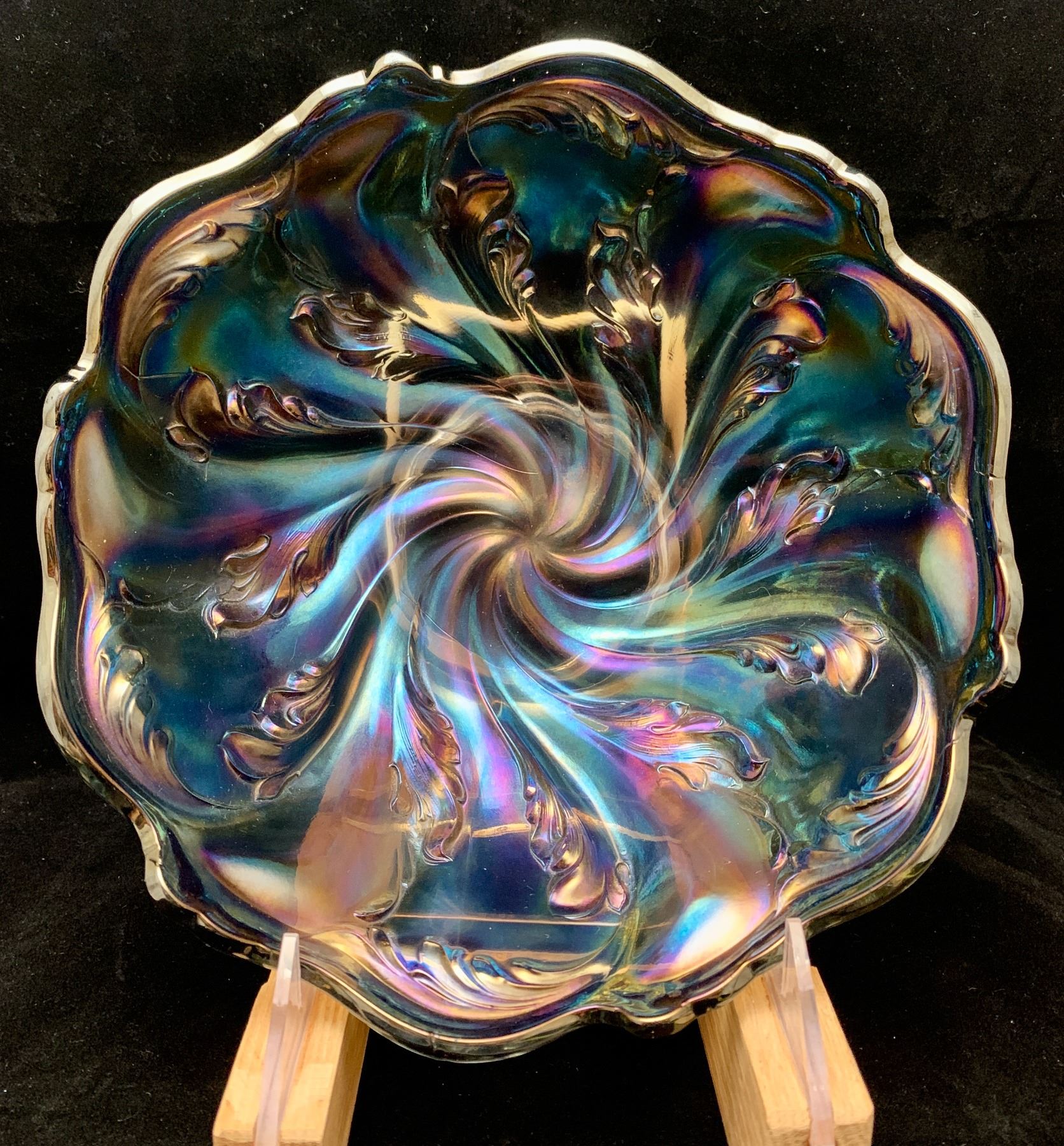 Imperial Glass Co. Peacock/Smoke Carnival Glass "Acanthus" Deep Round Serving Bowl / Rare / Circa 1911