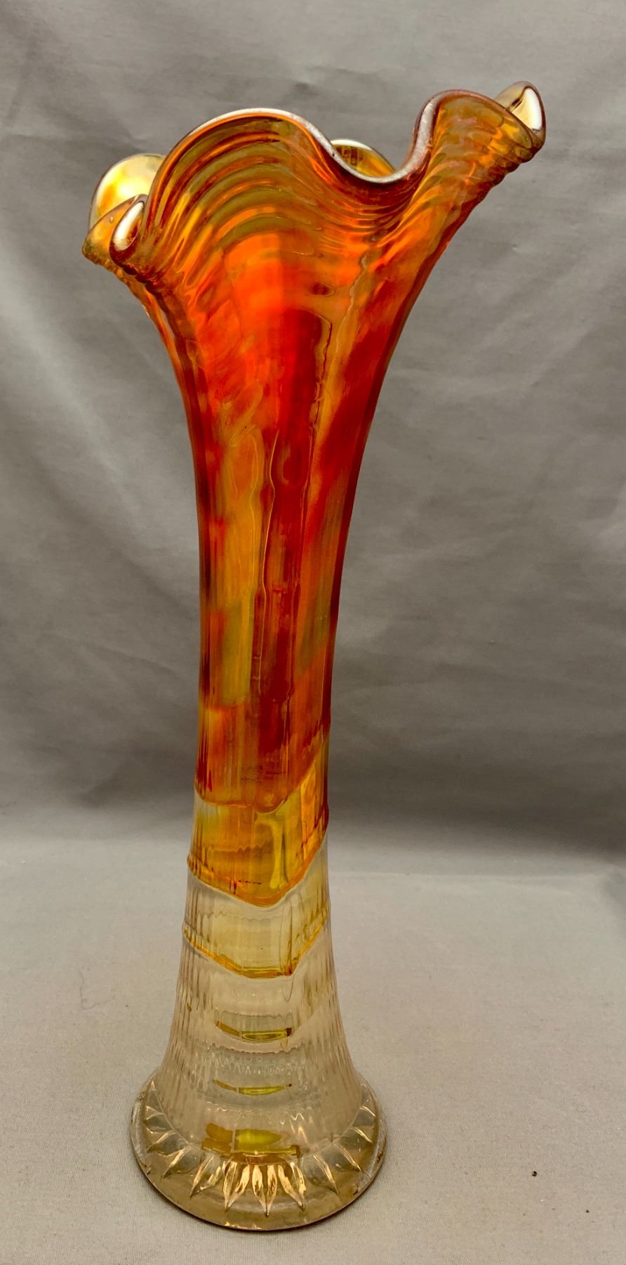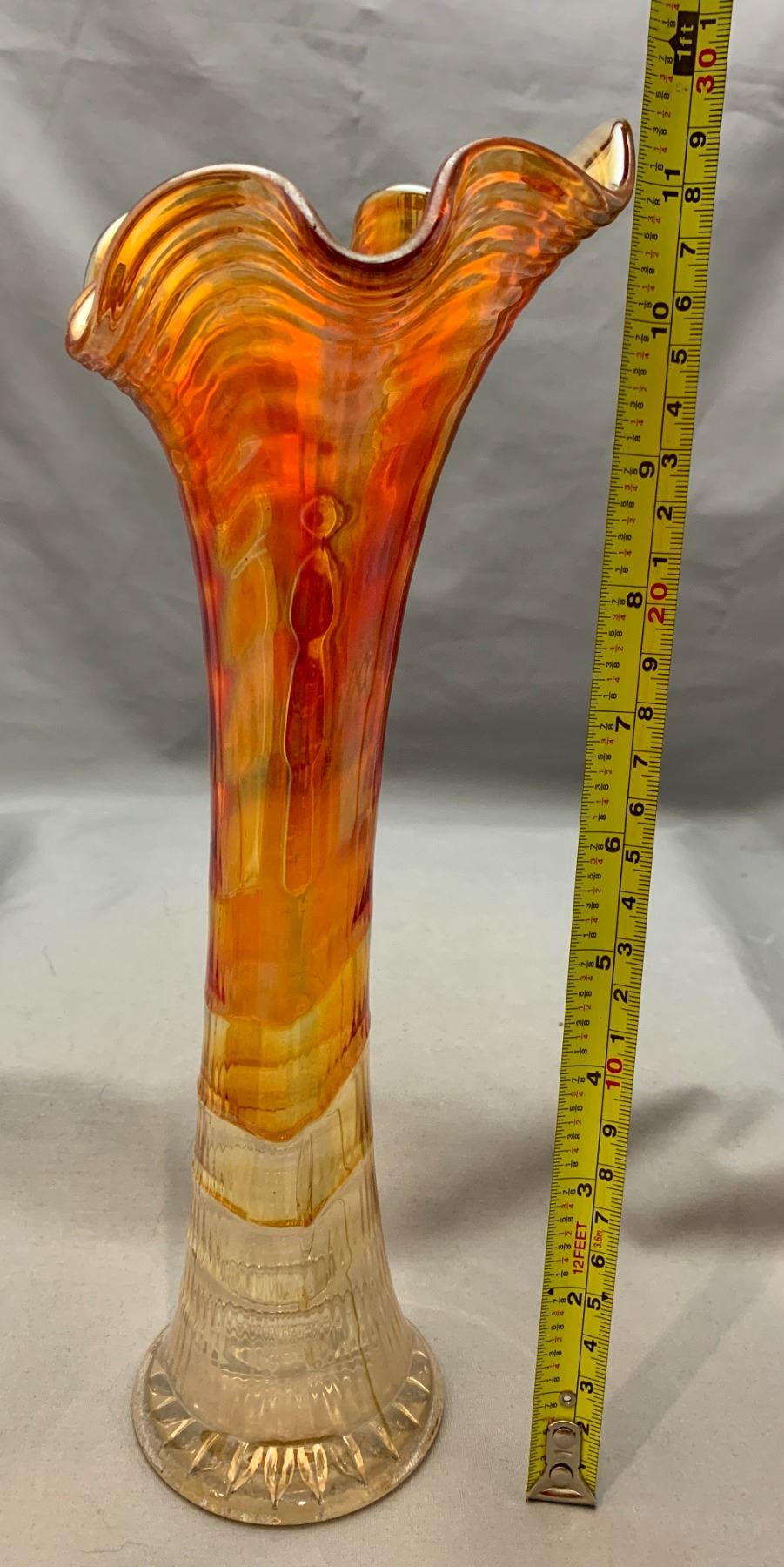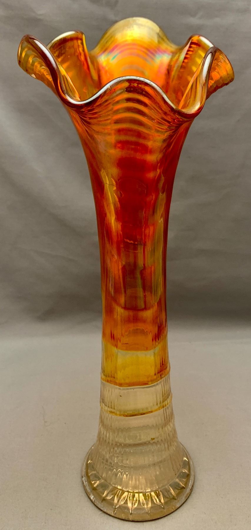 Imperial Radium Marigold Carnival Glass "RIPPLE" Vase. Beautiful & Rare! Circa 1908
