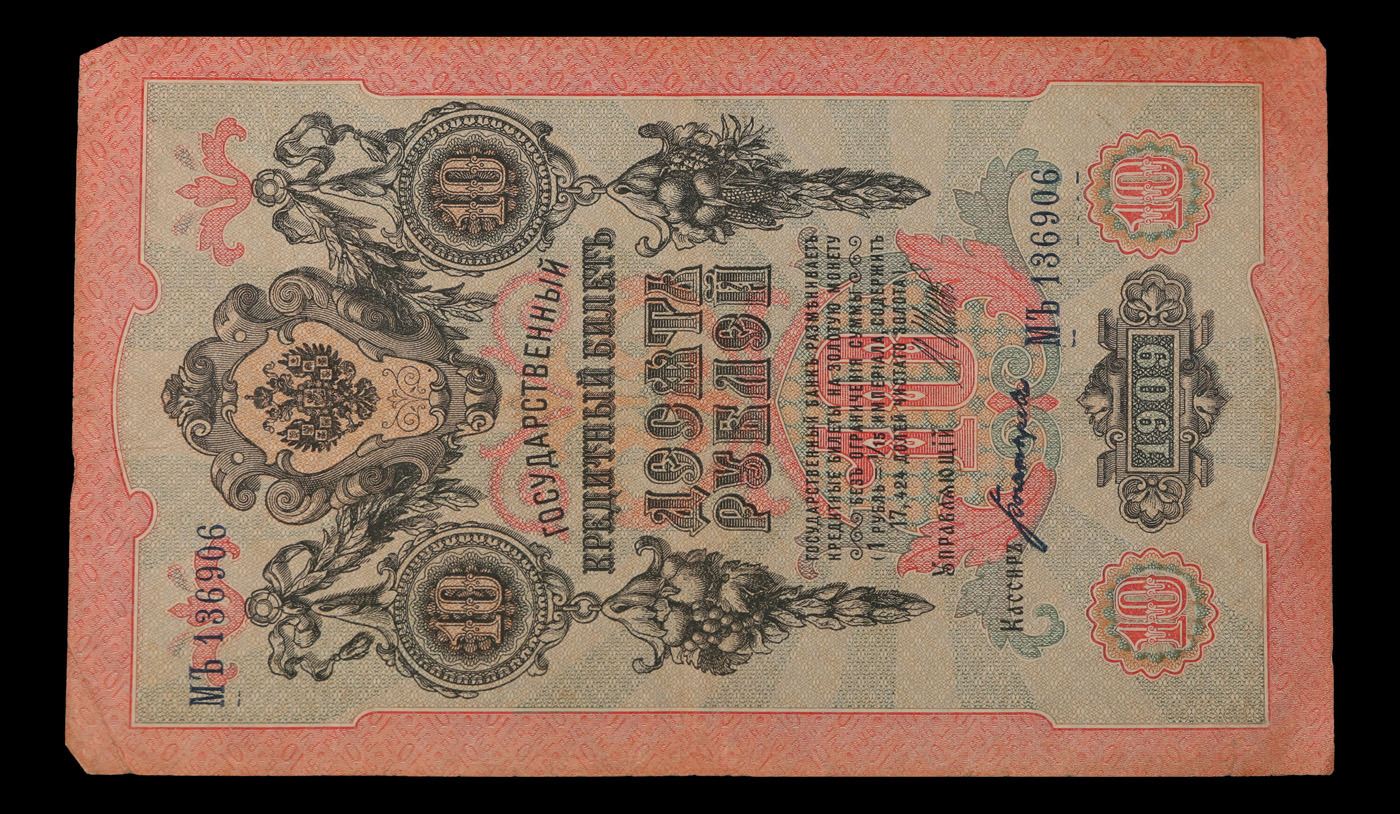 Imperial Russia 10 Ruble Note P# 11C Grades xf.