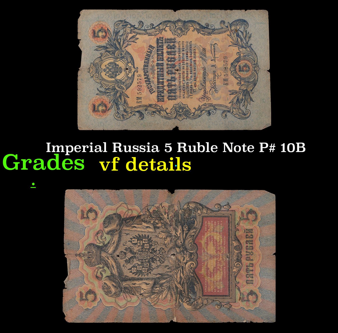 Imperial Russia 5 Ruble Note P# 10B Grades vf details.
