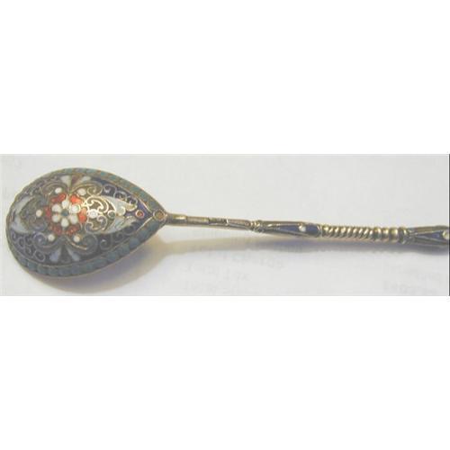 We offer a magnificent enamel spoon made in Moscow during the period 1890-1898 by the famous silversmith Klingert. This silversmith's work was regularly retailed by Faberge.