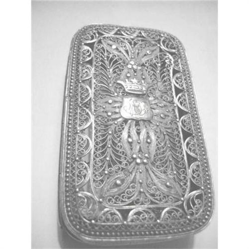 We offer an incredibly fine and beautifully made silver filagree Imperial Russian cigarette case, with a coronet crest and initials.