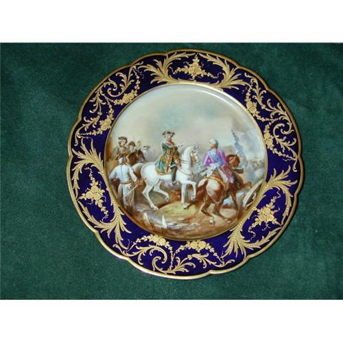 To the centre of the plate is a handpainted masterpiece of the Battle of Laufeld.