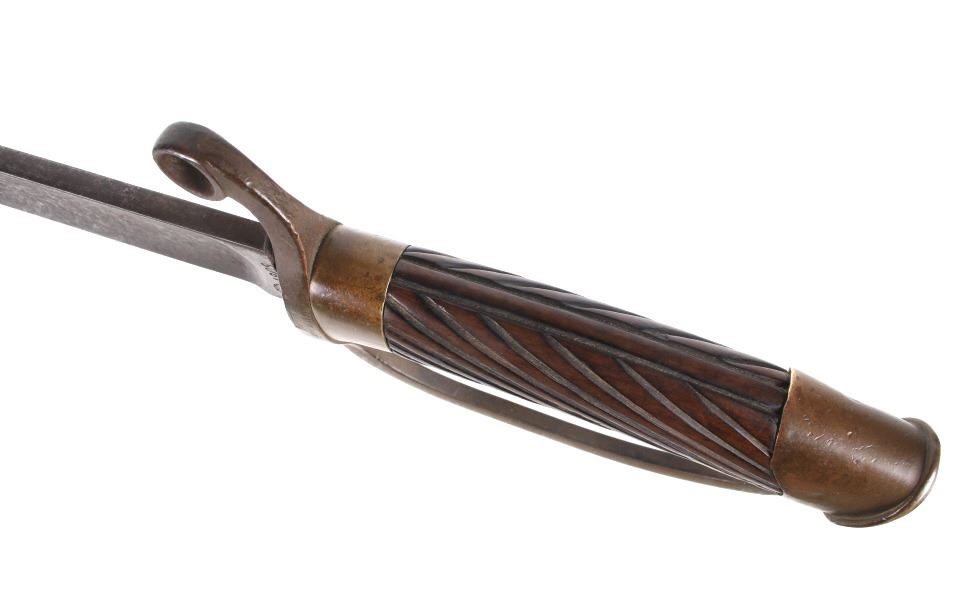 Featured in this lot is a Russian Imperial M1881 Officers cavalry sword dated 1909. The sword features a 34" long curved blade with brass guard and pommel, and grooved wooden grips. The blade features a single cutting edge with a fuller long 3/4s of the blade. The piece shows a brass D guard, pommel, and bolster. The handle shows a grooved wooden grip. The guard and blade are marked in Russian on the left side with the date 1909. The right side is marked with "AA5" on the blade and "A1445". The sword shows good condition overall with some wear and patina due to age. The sword measures 40" long overall with the blade being 34" long.*