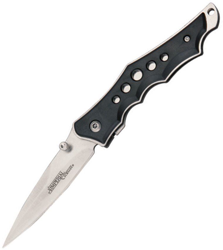 Linerlock - 4 1/8" closed. 3" stainless blade with thumb stud. Stainless frame with lanyard hole. Black composition onlay handles with machined hole cutouts. Stainless pocket clip.