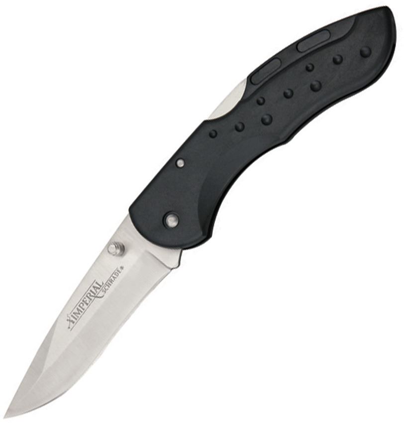 Lockback Black - 4 1/2" closed. 3 1/8" stainless blade with thumb stud. Black composition handles. Stainless pocket clip.