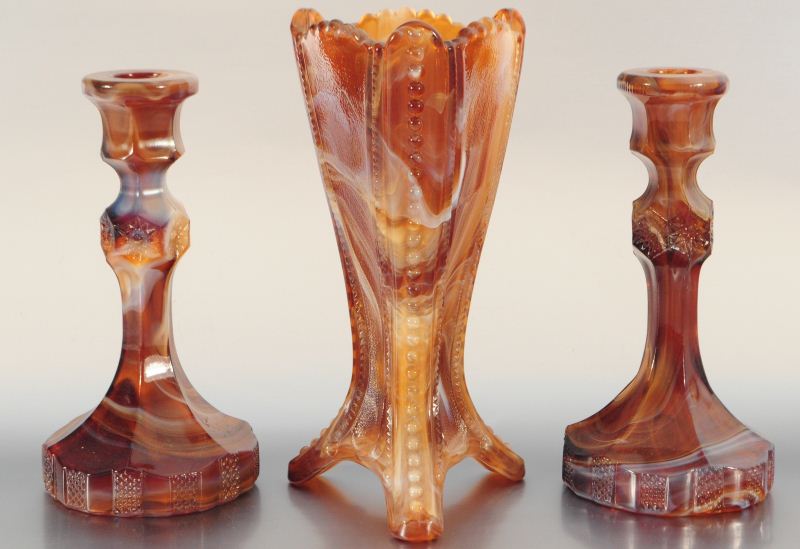 Imperial Glass Candle Holders and Vase, Each Measures 8" Tall