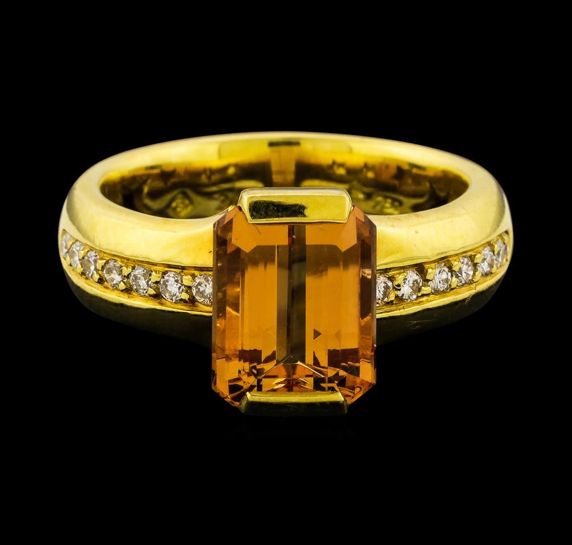 One ring featuring: 18KT Yellow Gold containing Imperial Topaz and Diamonds. Total Weight of Ring: 8.2 grams.
