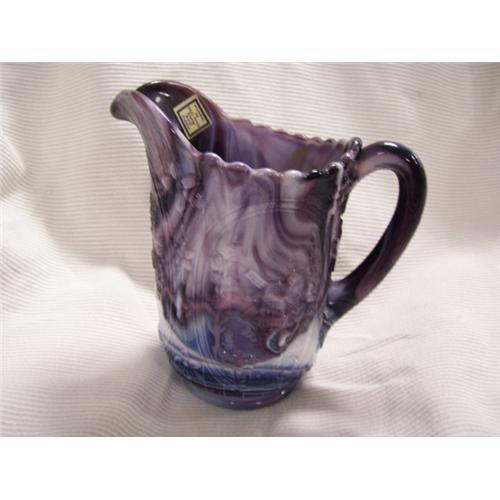 Vintage Imperial Unsigned Milk Pitcher, still has the original white Imperial sticker. It is Purple Slag Glass Circa 1850 by Imperial, the pattern is Windmill, has no cracks or chips, but needs professional cleaned.