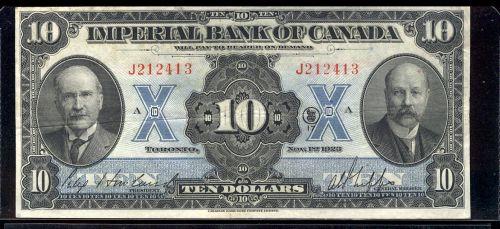 ImperialBank of Canada 1923 $10 1648852 CH:375-18-06, VF-EF.