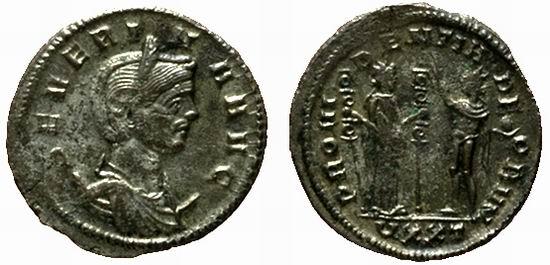 Severina. Antoniniano. s/d. Anv.: SEVERINA AVG. Busto con diadema y revestido a derecha. Rev.: PROVIDENTIA DEORVM. "La Fe" con dos estandartes frente al Sol con un globo. Restos de plateado original. 3,95gr. CH-13. Ae. MBC.