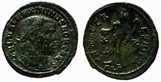 Maximino II, Daza. Follis. s/d. Alejandría. Anv.: GAL. VAL. MAXIMINVS NOB. CAES. Rev.: GENIO CAESARIS. Genio en pie a izquierda con pátera y cuerno de la abundancia. En exergo ALE. Erosiones en el anverso. 6,33gr. CH-44. Ae. MBC+/MBC.