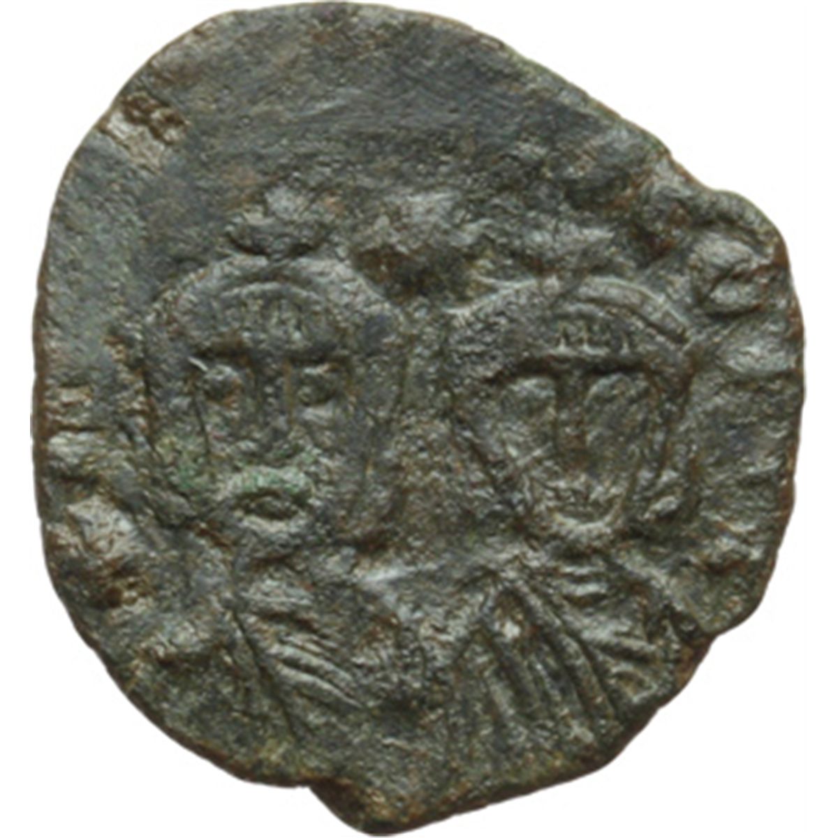 Impero Bizantino. Teofilo (829-842). Follis, Siracusa. D/ ΘEOFILOS bAS. Busto frontale di Teofilo. R/ Busti frontali di Michele II e Costantino. Cfr. BMC. 49-52. AE. g. 2.56 Bel BB+/BB.