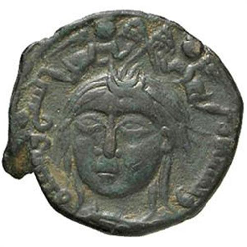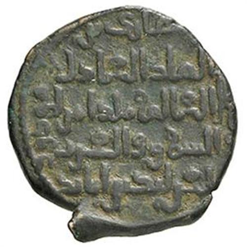 Oriente Antico. Impero Ottomano. Seifeddin Ghazi II (1169-1180). Dirham. D/ Testa virile rivolta tre quarti a sinistra. In alto, ai due lati, due angeli. A destra e a sinistra legende. R/ Legenda centrale. Cfr. Edhem 121. gr. 14.30 AE. Patina verde. Bel BB.
